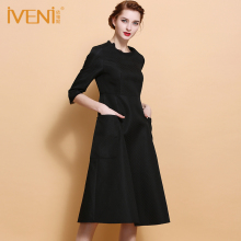 IVENI/依维妮2017春装新款黑色经典时尚A字型大摆优雅连衣裙132