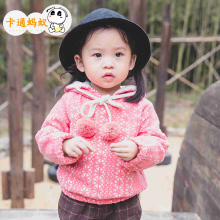 卡通蚂蚁童装秋冬装女童外套小童宝宝连帽毛线加厚加绒儿童上衣