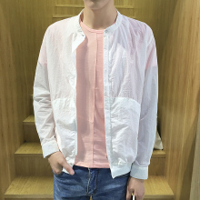 2017春装男士夹克衫青年韩版修身立领白色薄外套潮流男装上衣