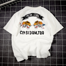 夏季T恤男士短袖个性虎头印花青少年半截袖休闲男装体恤衫潮男tee