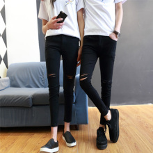 破洞牛仔裤男九分裤情侣裤子韩版修身款乞丐裤男牛仔裤小脚潮男裤
