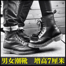 秋冬新款内增高马丁靴女英伦风加绒复古真皮短靴男女机车靴情侣鞋
