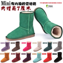 5825内增高雪地靴女中筒新冬季仿羊皮毛一体真皮保暖圆头防滑棉鞋