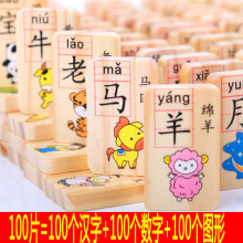 200粒汉字数字多米诺骨牌3-6岁宝宝早教识字木制积木儿童益智玩具