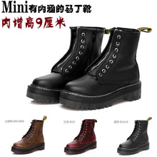 秋冬新款英伦欧美复古系带厚底松糕机车短马丁靴女牛皮内增高9cm