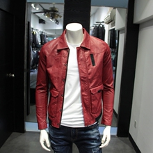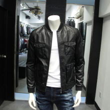 2017春新款男装外套男立体贴袋休闲翻领皮衣男夹克原创设计时尚潮