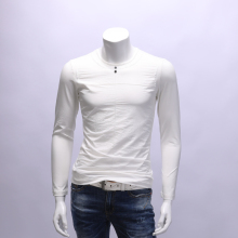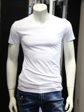 新款男装短袖t桖男V领丝光棉纯色打底衫黑白男士纯色t桖男MYTZ