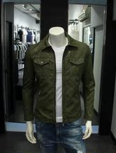 16春新款男装外套男个性棒球领修身迷彩夹克男皮衣原创设计时尚潮