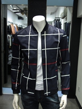 16春新款男装外套男个性棒球领格子修身外套男夹克原创设计时尚潮