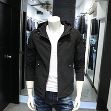 2017春新款男装外套男简约拼接休闲纯色连帽夹克男原创设计时尚潮