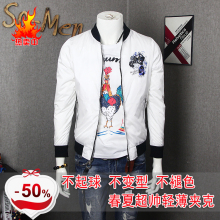 17春夏新款时尚印花修身薄款韩版青年白色棒球服男士夹克衫花外套
