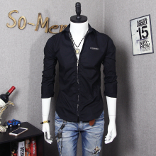 2017秋季新款 时尚气质奢华型男个性 黑色拉链长袖衬衫衬衣潮男装