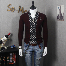 2017秋冬新款潮男装 韩版时尚气质拼料假两件 貂绒羊毛开衫针织衫