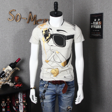 2017春夏新款 气质潮男 痞子男人海报 莱卡棉修身圆领男装短袖t恤