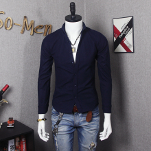 2017秋季新品 时尚典雅气质纯色型男 紧身青年长袖衬衫衬衣潮流男