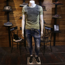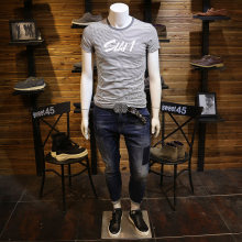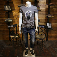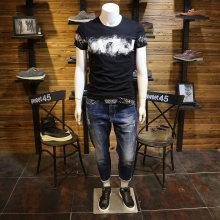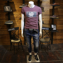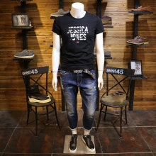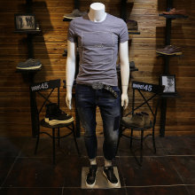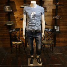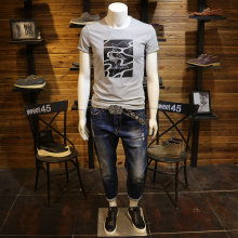 17男士圆领短袖t恤圆领印花体恤修身夏季打底衫半袖半截袖衣服潮