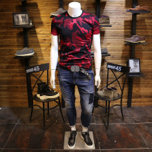 新款夏印花修身圆领短袖t恤男士休闲大码半袖男t打底衫青年潮上衣