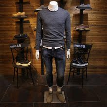 2016款净版修身男装毛衣男士百搭圆领套头针织衫男薄款打底线衣潮