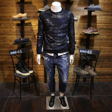 2016秋装套头卫衣运动服男 韩版修身简约百搭迷彩青年卫衣男士