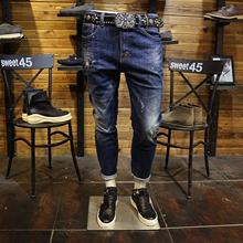 2017春季牛仔裤男修身型薄款小脚弹力青年裤子男 牛仔裤子韩版潮
