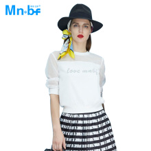 曼诺比菲mnbf 新款清爽纱网卫衣 印花拼接上衣T恤