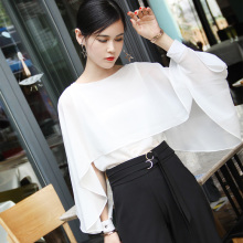 2012夏新款假两件斗篷式雪纺衫宽松显瘦蝙蝠袖披肩防晒上衣女潮