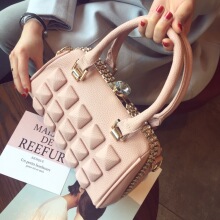 女包2017新款甜美潮流时尚医生包女士手提包铆钉扣单肩包斜挎包包