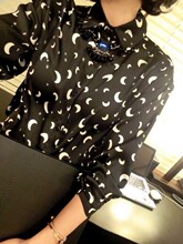 2015春装新款韩版大牌气质长袖女士雪纺衬衫 OL通勤星月职业衬衣