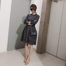 2017秋冬复古提花几何修身剪裁 气质七分袖针织蓬蓬裙A字连衣裙女