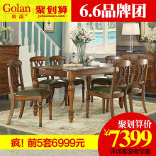 广兰全实木餐桌椅组合 美式餐桌欧式餐桌特价1桌6椅饭桌家具1927