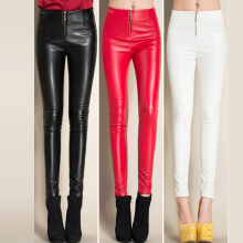 春秋新款高腰女士小脚裤欧美拉链外穿打底裤加厚加绒PU皮裤女长裤