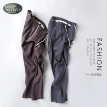 HOLD YOURSELF优尚男装休闲裤天然亚麻薄款九分裤男款小脚裤夏季