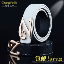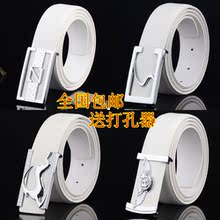 白色皮带男真皮牛皮腰带男平滑扣韩版潮男休闲百搭青年个性字母扣
