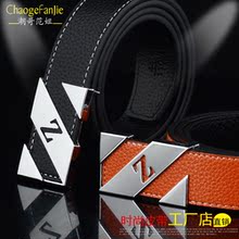骷髅头字母扣真皮带男韩版光面潮流青年腰带男时尚百搭牛皮裤带
