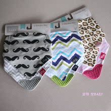 出口原单纯棉宝宝双层三角巾口水巾带牙胶咬胶围兜2只装 超级萌~