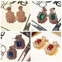 秒杀韩版礼物大牌祖母绿宝石水晶耳环奢华时尚夸张复古方形耳扣女