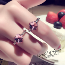 包邮日韩定制小花粉水晶戒指新款韩版时尚简约气质甜美食指女饰品