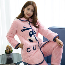 天天特价冬季女士三层法兰绒夹棉睡衣女加厚贝贝绒棉袄大码家居服
