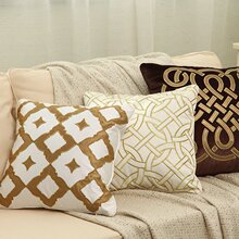 欧式沙发抱枕现代简约靠垫套绣花鹿北欧靠枕样板房咖色方腰枕靠背