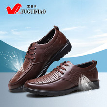 FGN/富贵鸟男鞋夏季真皮镂空透气凉皮鞋男士商务休闲系带夏天鞋子