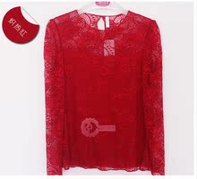 断码特价 丽维正品 年秋冬新款圆领蕾丝镂空女式长袖打底衫LX4342