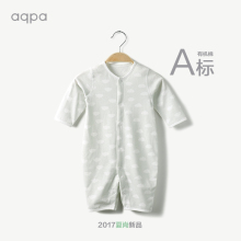 aqpa新生儿连体衣夏季薄款纯棉前开哈衣婴儿爬服1-12个月宝宝长袖