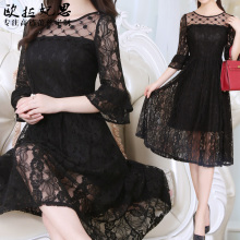 2016新款春夏大码蕾丝连衣裙秋 中长款修身女士裙子网纱长裙过膝