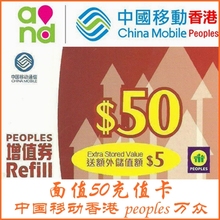 香港移动 充值 PEOPLES 充值卡 香港移动万众增值50/100港币