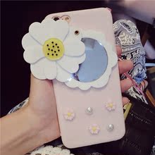 iphone6plus手机壳女挂绳苹果7硅胶套diy镜子花6s个性韩国大气潮