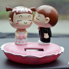 可爱卡通汽车亲嘴情侣太阳能公仔摇头小玩偶摆件汽车用品内饰品
