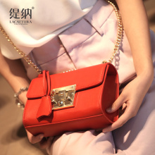 2017新款韩版简约百搭斜挎包迷你锁扣小方包真皮女包单肩小包包潮