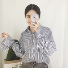 实拍2017春装新款韩版宽松时尚刺绣条纹衬衫女长袖打底衫上衣潮