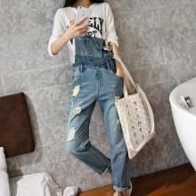 实拍2017新款破洞韩版牛仔背带裤女宽松女生学院风吊带裤潮