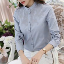2017实拍白衬衫女长袖打底衫春秋2017春装新款女装绣花修身衬衣